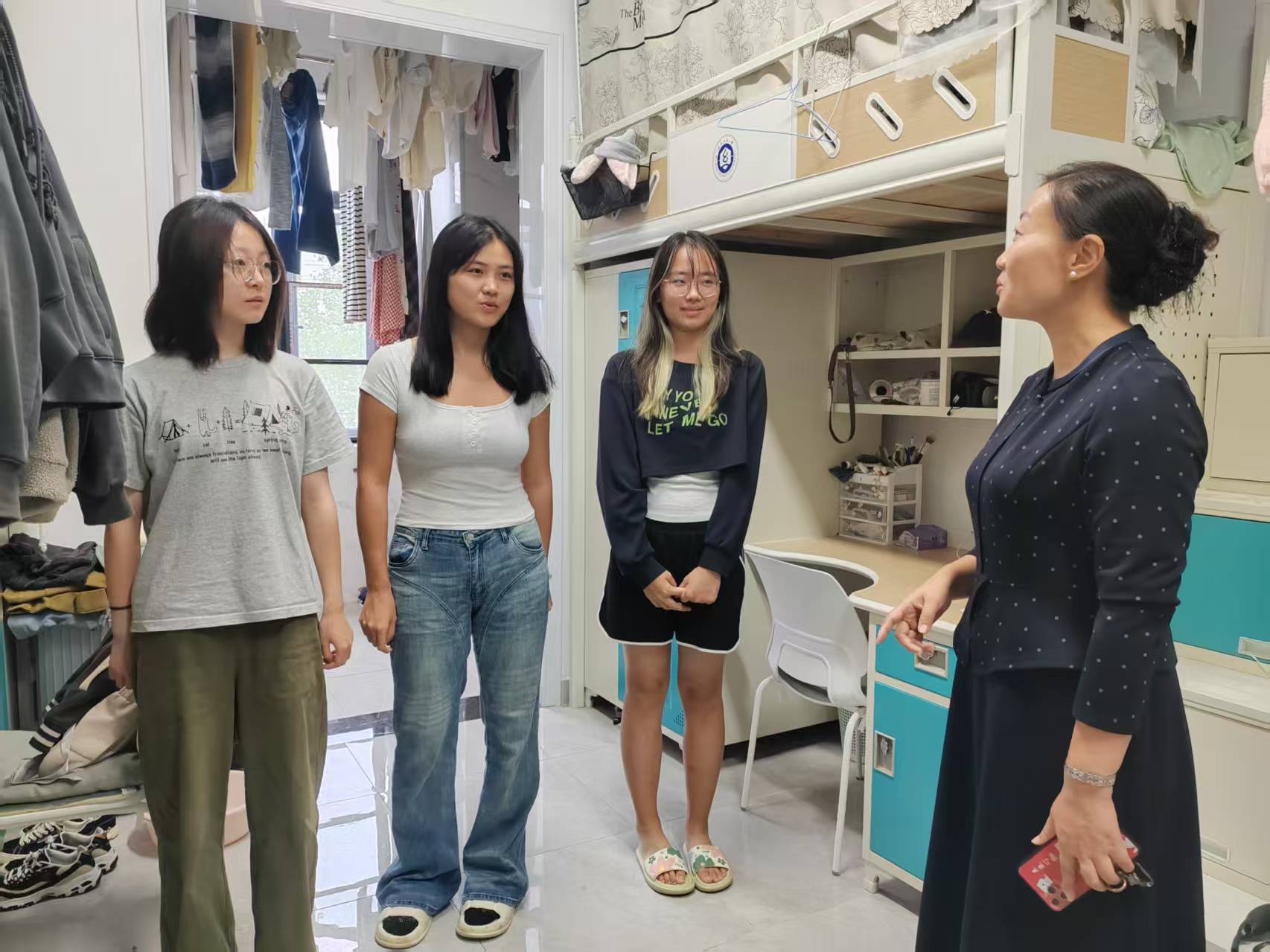 走访过程中,邹茜指出,宿舍作为集体生活核心空间承载着多重价值。她强调,宿舍不仅是员工日常生活的重要空间,更是思想碰撞出火花、品德修养的熔炉。她期待同学们在集体生活中互帮互学、携手成长,自觉将社会主义核心价值观内化于心、外化于行,以具体行动诠释新时代青年的责任担当与历史使命。