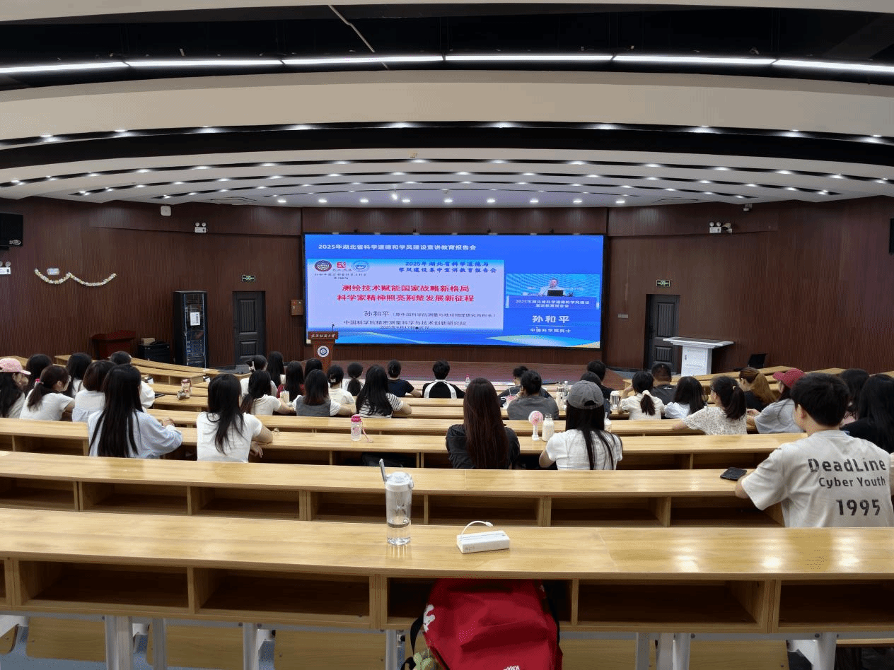 会上,同学们全神贯注,认真聆听。孙和平院士以科学巨匠方俊院士的科研经历为脉络,回忆了两人共同奋进的科研往事,并将科研的精神火炬传给年轻一代。随后,孙和平院士围绕“技术赋能国家战略新格局”作主题报告,他结合自身科研工作经历,着重指出当前湖北高校学子应当进一步传承科学家精神,共同守护学术净土,积极响应科技强国的号召,深入贯彻落实习近平总书记有关加强学风建设工作的重要指示精神。