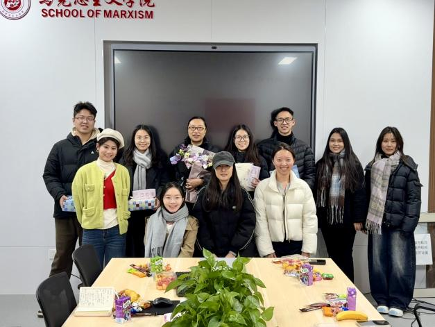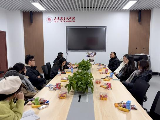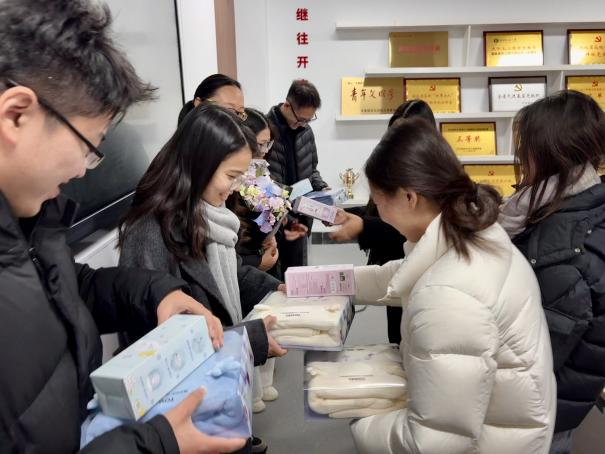 分享结束后,温馨的送温暖仪式拉开帷幕。研一、研二同学代表捧着装满暖手宝、保温杯的礼盒走上前:“师兄师姐,天气冷了注意保暖,我们等着你们的好消息!”研三学子接过礼品感动地说:“谢谢老师和师弟师妹,这份温暖让我们觉得不是一个人在战斗。”随后的自由交流中,大家从学术研究的难点谈到校园生活的趣事,从职业规划的迷茫聊到备考心态的调整,会议室里暖意融融。
